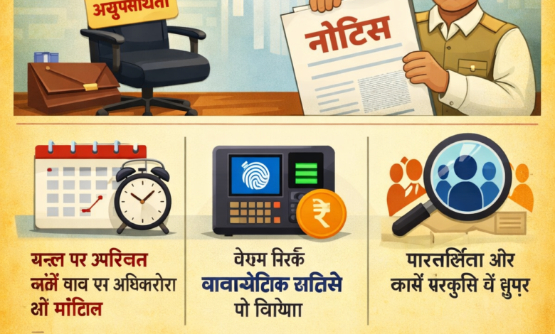 जारी निर्देशों में दोनों अधिकारियों को व्यक्तिगत रूप से उपस्थित होकर स्पष्टीकरण देने को कहा गया है। साथ ही स्पष्ट किया गया है कि समय पर जवाब नहीं देने या असंतोषजनक जवाब मिलने पर अनुशासनात्मक कार्रवाई की जाएगी।